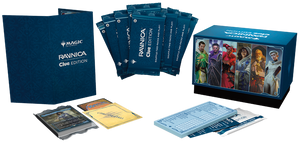 Ravnica: Clue Edition contains 8 ready-to-play Ravnica: Clue Edition Boosters, 1 Clue Booster containing 21 Evidence cards, 1 Traditional Foil Shock Land Box Topper card, 4 Hidden Info Screens, 1 Evidence Notepad, 1 Case File Envelope, and a sturdy card storage box.
