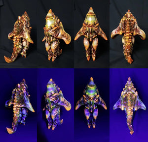 The next vinyl toy by Manta Toys: Manta X is a 10.5 in tall behemoth with removable helmet. This is the Flourescent Coral Edition, only 45 pieces for the North American market.