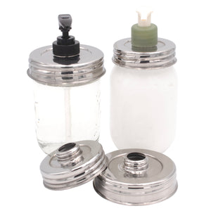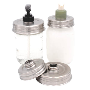 Due to a production error, these lids are not entirely compatible with Mason Jar Lifestyle brand soap pumps, but they work well with pumps that come with many brands of soap and lotion like Aveeno and Soft Soap. Most 1in diameter threaded pumps will work.