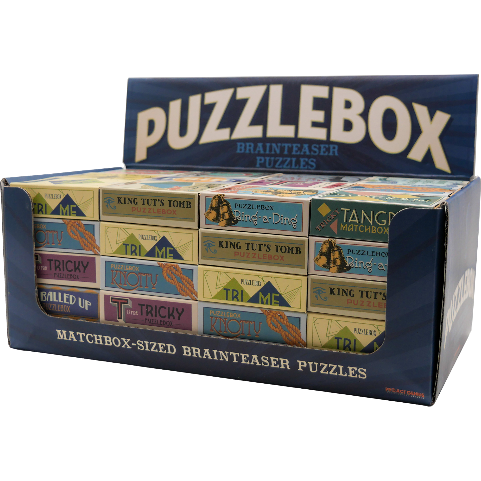 An assortment of 12 puzzles to collect, each individually packaged in a matchbox. Collect them all.