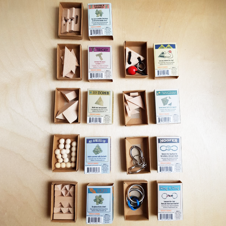 The stylish 1920's design and variety of difficulty levels make these brainteasers a great impulse gift item.