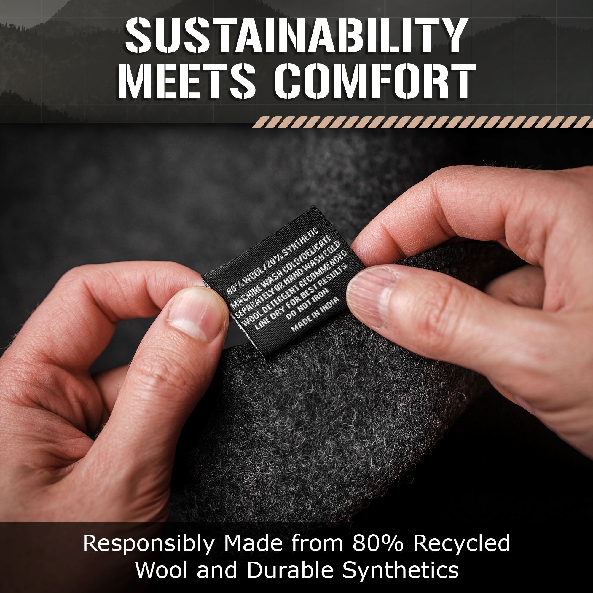 - MATERIAL: 80% Recycled Virgin Wool / 20% Synthetic Fibers