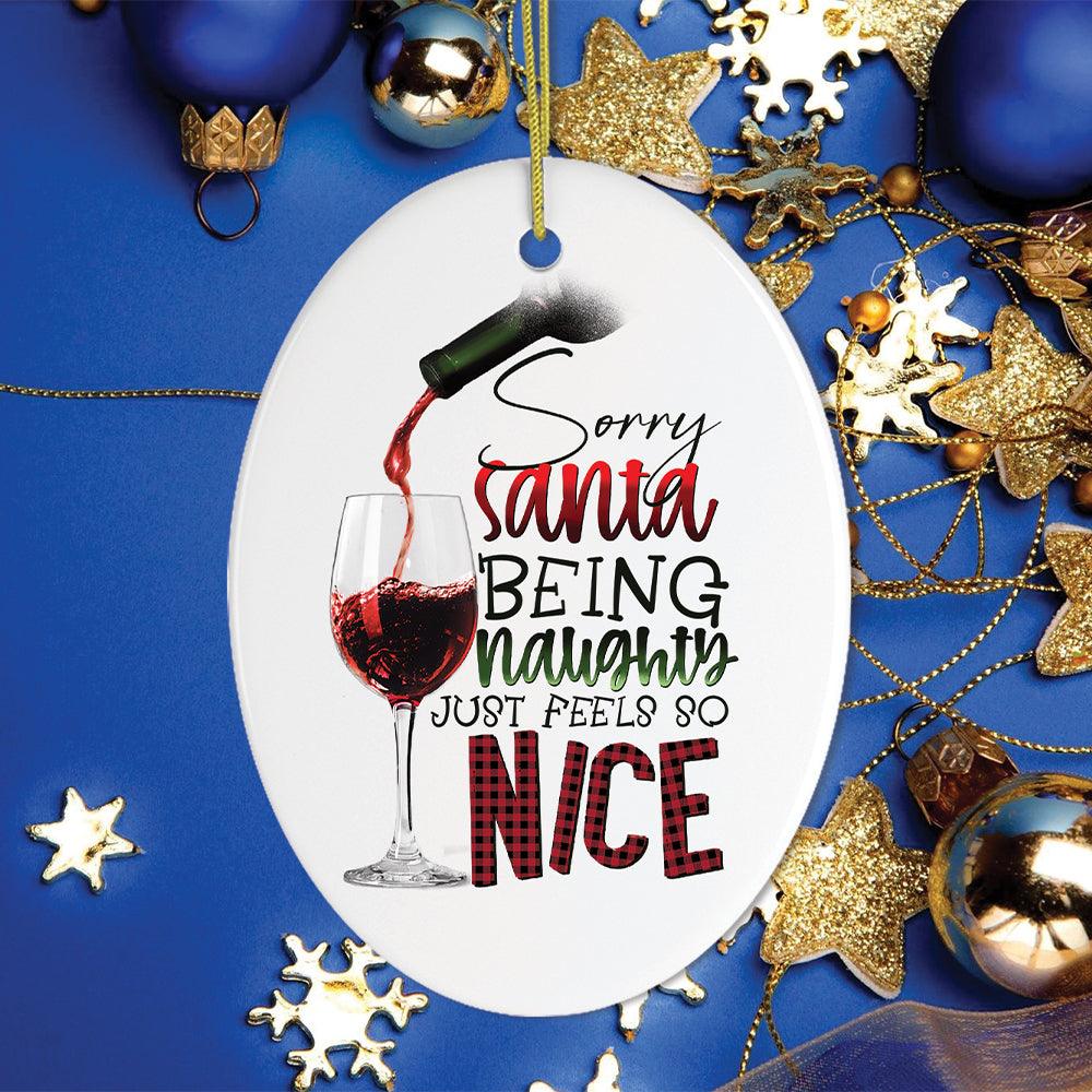 Naughty Wine Drinker Funny Christmas Ornament