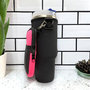 Clip on Pocket Attachment Accessory for 40&30oz Drink HandlersTM Sleeves. Pocket has top zipper closure with 3 inside mesh card pockets and one outside mesh pocket. This Pocket accessory can be worn alone as a purse or clipped on to other Lit handler products with clips as an attachment to hold more valuables.