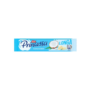 Nestle Princessa Longa Kokosowa from Poland is a long wafer bar filled with creamy coconut, offering a tropical taste in every bite.