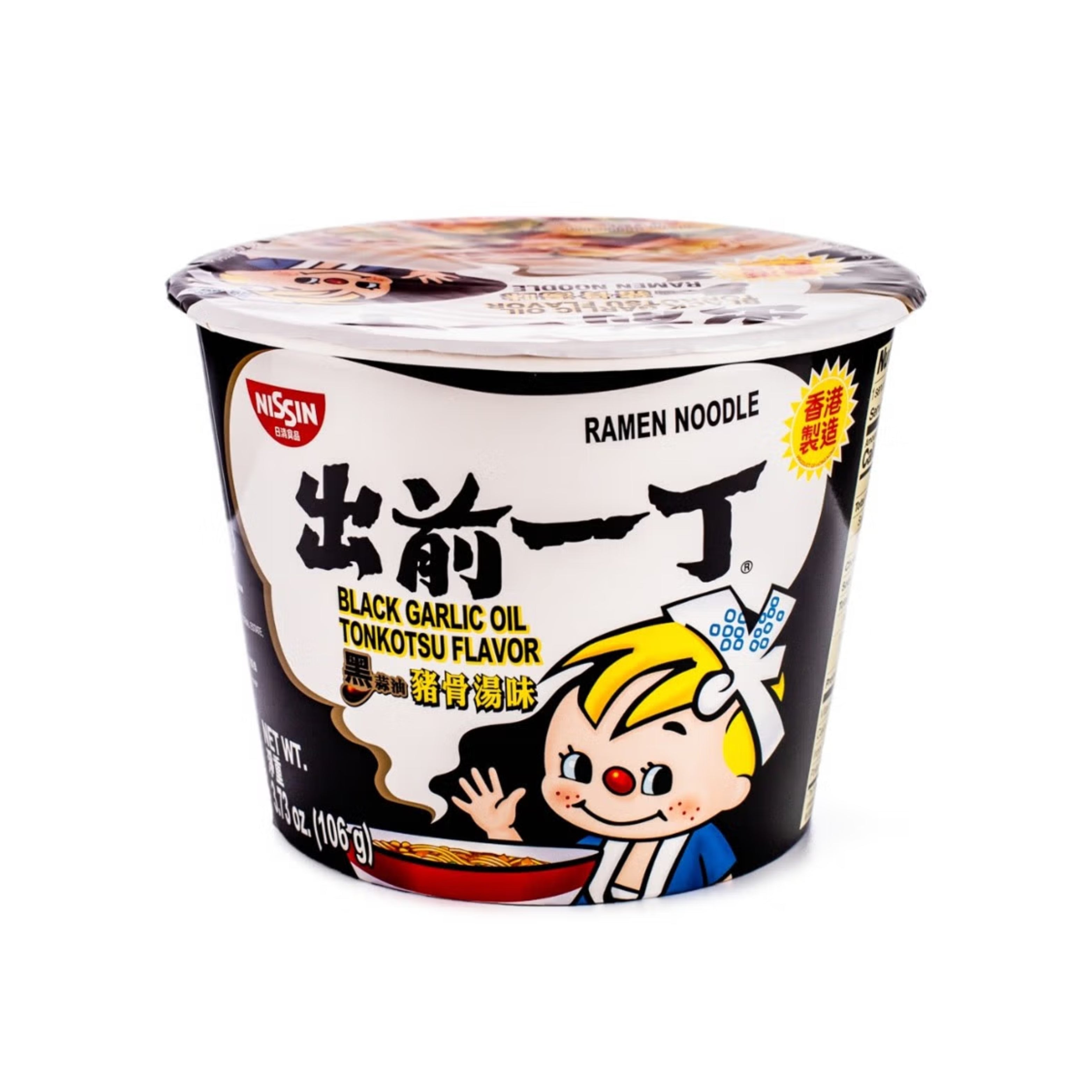 Indulge in the rich and savory goodness of Japanese Black Garlic Tonkotsu Ramen with Nissin Demae Bowl Ramen. A premium noodle experience.
