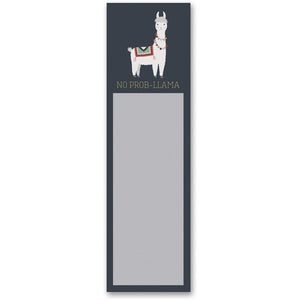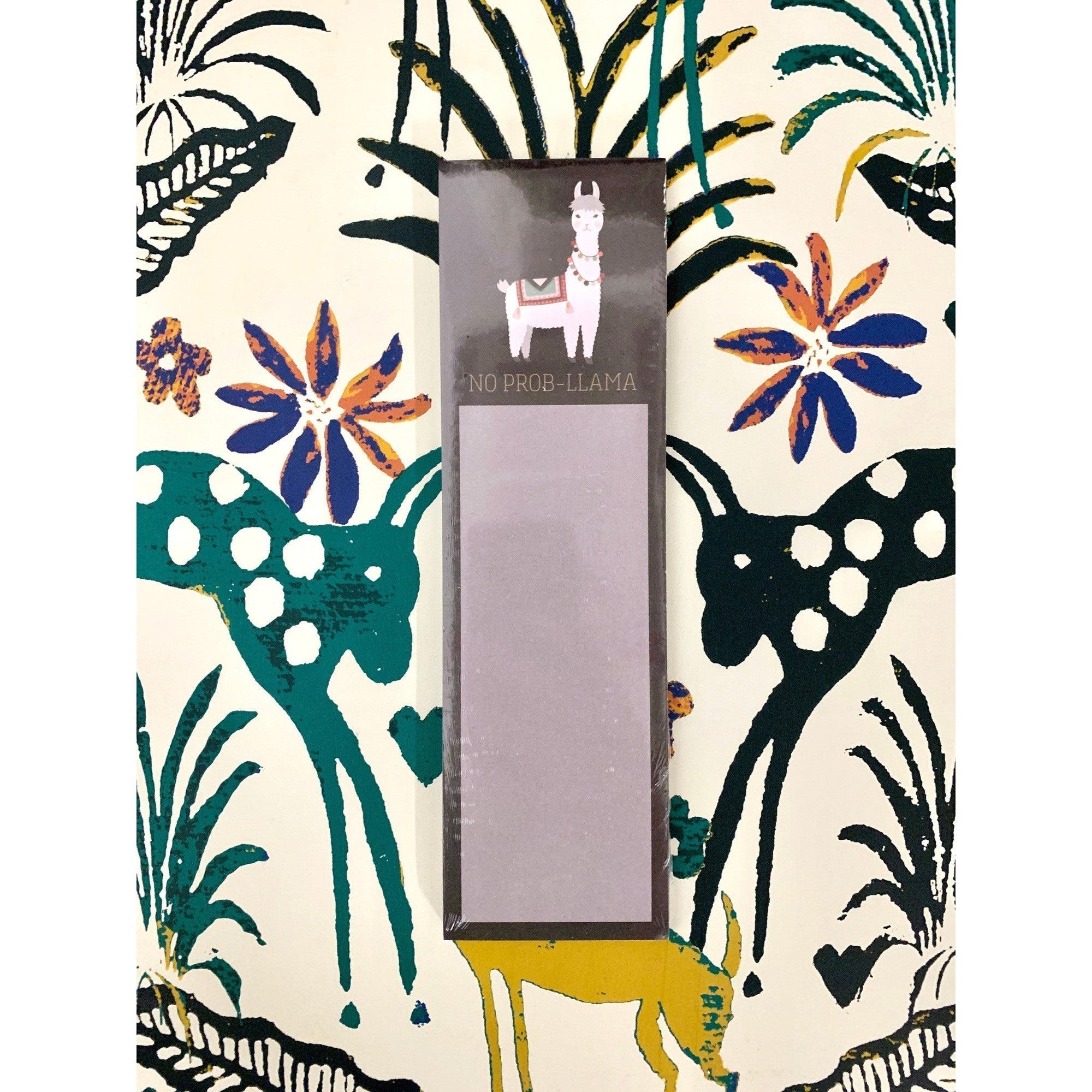 Add personality and character to any space with this magnetic paper list notepad, featuring a quilted llama design with a playful "No Prob-Llama" sentiment.