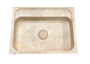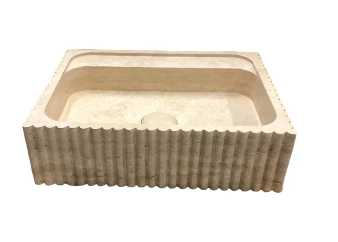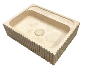 Oasis Beige Travertine Wall-mount Bathroom Vanity Sink Fluted (W)20" (L)24" (H)6" is carved from Solid Block is handcrafted in Turkey.