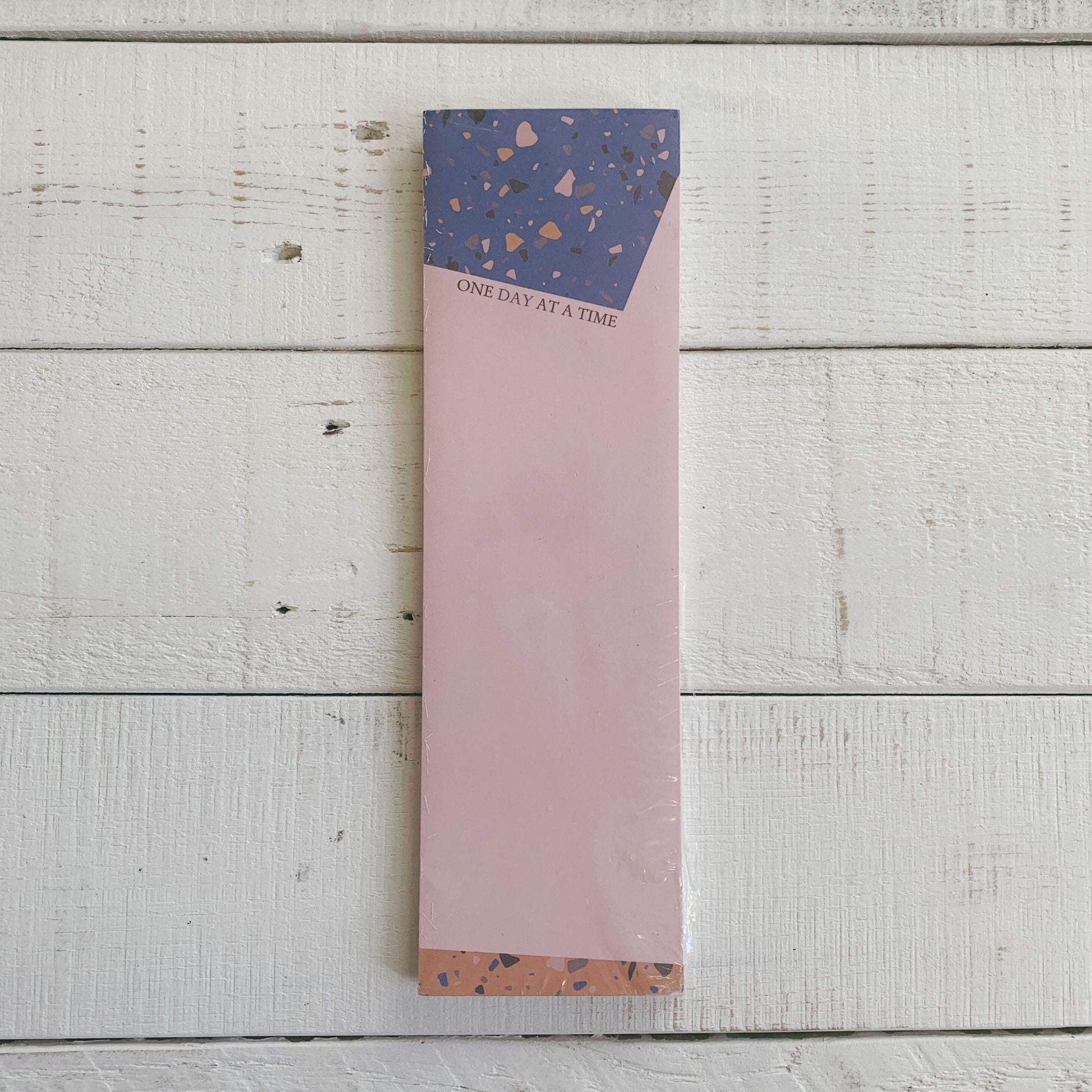 One Day At A Time Magnetic List Notepad in Terrazzo Design | 9.5" x 2.75" | Holds to Fridge with Strong Magnet | 1980s Memphis-Inspired Design