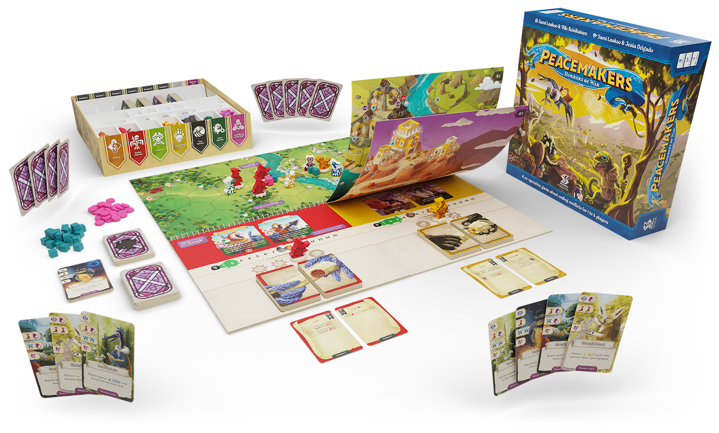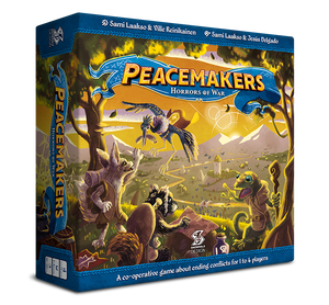 Peacemakers: Horrors of War is a thematic co-operative board game where you attempt to bring peace. The game can be played with up to 4 players, including solo. As an adventurer, you try to stop armed conflicts between animalfolk nations. Do your best to avoid the horrors a destructive war would inflict.