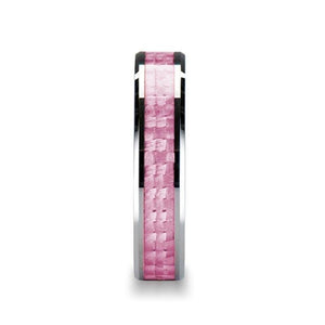 PINK Beveled Women's Tungsten Wedding Band with Pink Carbon Fiber - 6 mm
