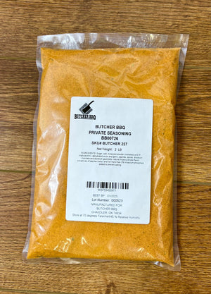 Introducing Butcher BBQ's Private Seasoning, the ultimate secret weapon to take your grilling game to the next level. Created with love and passion for all things flavorful, these rubs are specially crafted to enhance the natural flavors of any cut of meat. Our Private Seasoning is like a symphony of savory spices, carefully selected and blended to highlight the beautiful flavors that every backyard chef craves. Whether you're grilling up a mouthwatering steak or embracing the time-honored tradition of low and slow cooking, this seasoning is your partner in crime. But that's not all - our Competition Seasonings are a testimony to our commitment to excellence. We've scoured the corners of flavorville to bring you the finest quality ingredients, hand-blended in small batches for an unrivaled taste experience. These masterpieces of seasoning craftsmanship will work their magic on anything you dare to cook - be it succulent seafood, hearty vegetables, juicy beef, tender pork, zesty chicken, or even wild game. Butcher BBQ is not just for the pros, though. It's for the backyard grillers who know flavor is serious business, the caterers who strive for perfection on every plate, the recipe writers who seek to dazzle taste buds, and the competition cooks who dream of BBQ greatness. Prepare to wow your guests with the best steak spice that will make their taste buds dance with joy. Get ready to turn ribs into a masterpiece with our specially crafted rubs. And rest assured, our BBQ rubs for chicken will take your poultry to new heights of deliciousness. Oh, and did we mention our specialty in smoked pork? Trust us, it's a game-changer. So why settle for ordinary when you can have extraordinary? Join the ranks of BBQ Pitmasters and embrace the unique savory flavor that Butcher BBQ brings to your culinary creations. Get your hands on our Private Seasoning and Competition Seasonings, and let the sizzle of success begin. Remember, with Butcher BBQ, every bite is an adventure, and every meal is a masterpiece.