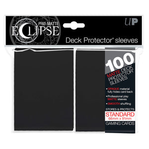 The PRO-Matte Eclipse Deck Protector sleeves completely hide card backs with an added layer of opaque black material. As a part of the PRO-Matte line, the Eclipse sleeves use a transparent matte material to show the card face while minimizing glare and offering a unique, smooth, and professional shuffling experience. Each pack comes with 100 sleeves and is designed to fit standard size cards such Pokemon and Magic: The Gathering