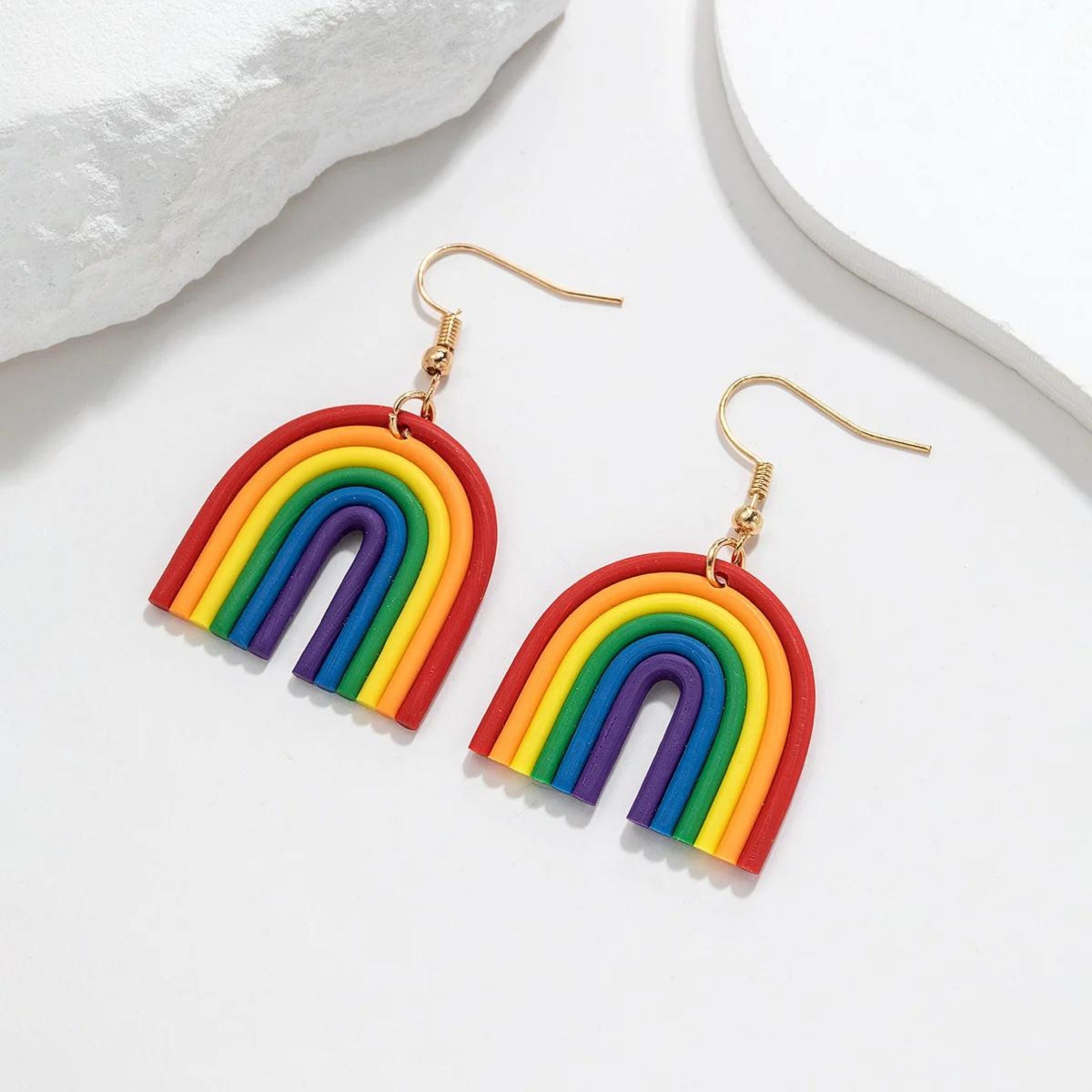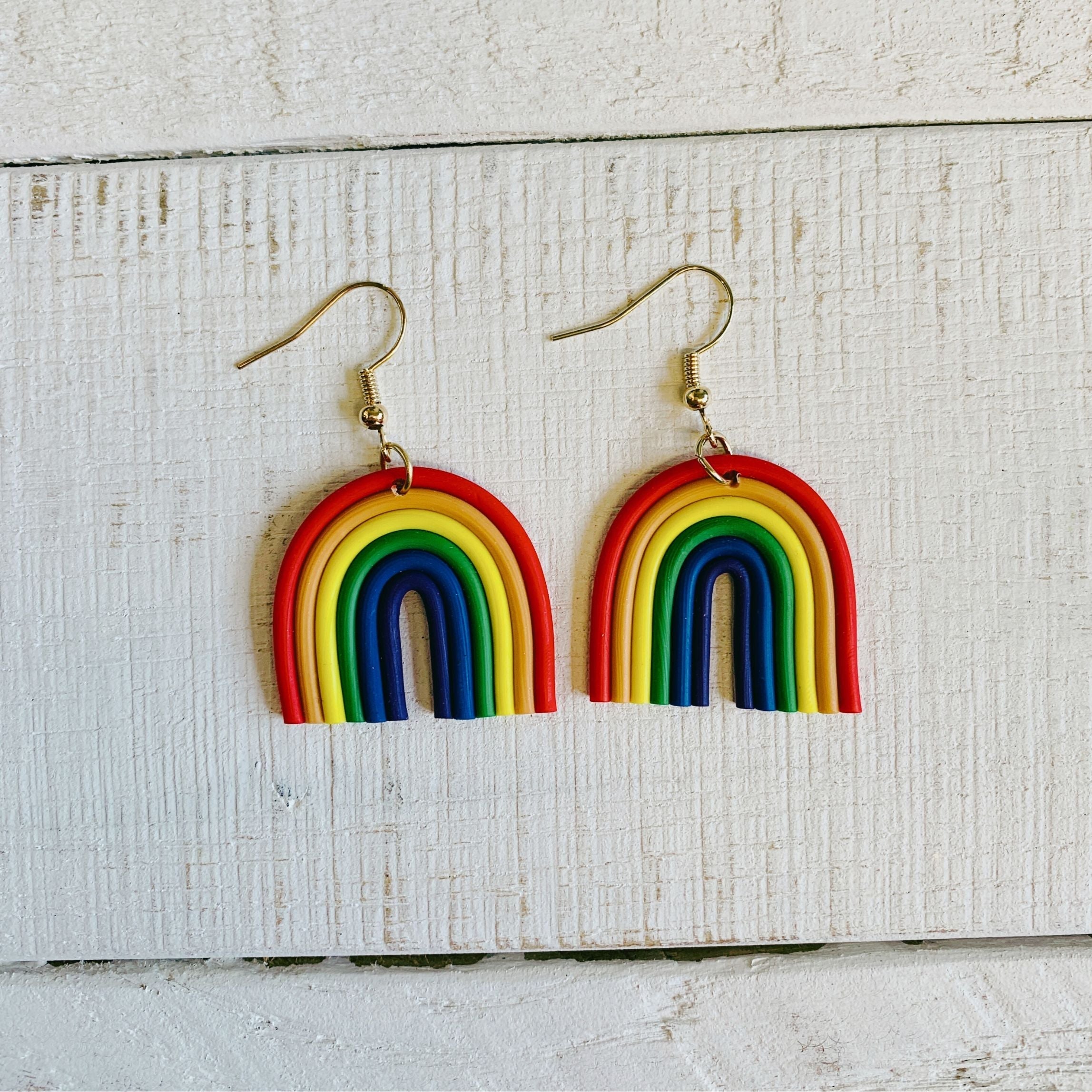 These cute wire hook earrings are the perfect accessory for any LGBTQ parade or event. Embrace your individuality and spread love with these eye-catching rainbow earrings 🌈 💜