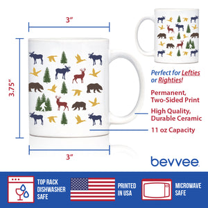 Rustic Outdoor Animals Coffee Mug - Nature Lovers Gifts for Women & Men - Large 15oz & 11oz White Ceramic Mugs