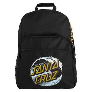 Roll up and stand out in the latest apparel and accessories from Santa Cruz Skateboards. The new Wave Dot backpack features main compartment butterfly opening, front pocket with organizer and removable key clip, ergonomic shaped padded shoulder straps, quick grab handle at top opening, front screen print wave dot. 12" w x 17" h x 6" d. Santa Cruz has been manufacturing the best skateboards and apparel since 1973. Innovative skateboards and artwork from the beginning 'til the end.