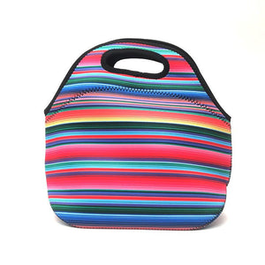 Carry your lunch in style with these 3mm thick neoprene lunch totes! These lunch totes are water resistant and have a zip top to keep everything in. All snacks pictured fit perfectly with room to spare! Interior Dimensions are 12 x 7 x 5.5.