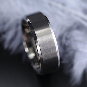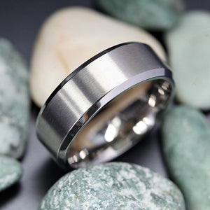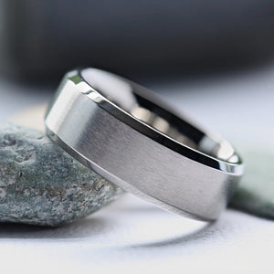 SHIRE Titanium Brushed Center Men’s Flat Wedding Ring with Polished Beveled Edges - 6mm & 8mm