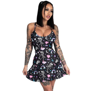 Unleash some punk-goth vibes with this Skeleton Unicorns Skater Dress!