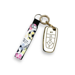 This Soccer Wristlet Keychain from Drink Handlers is the perfect accessory for any soccer fan. It's made from comfortable neoprene and features a cute pattern. The wristlet is designed to securely hold your keys, making it a great way to show off your team spirit.