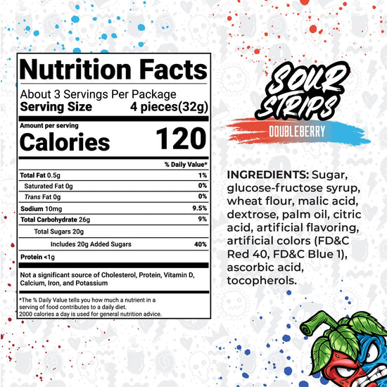 Sour Strips Double Berry (104g) are a delectable candy treat that combines the tangy flavors of two beloved berries. Each package contains thin, chewy strips of candy that are bursting with the delightful blend of sourness and sweetness from two types of berries. Whether it's the juicy burst of strawberries or the tartness of raspberries, these strips offer a tantalizing taste experience. With their vibrant colors and intense berry flavors, Sour Strips Double Berry are sure to satisfy your cravings for a fruity and sour treat. Enjoy them on their own or get creative by incorporating them into desserts and snacks for an extra burst of berry goodness. These double berry-flavored sour strips are a delightful choice for anyone who loves the irresistible combination of sour and berry flavors.