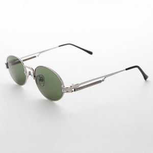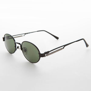 Super hip metal frame sunglass with RARE long spring attached temple design. Another great find at the Sunglass Museum. Unique unisex frame available in precious metal colors. Nice quality.