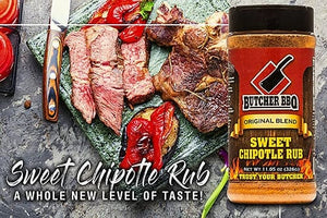 Introducing Butcher BBQ's Sweet Chipotle Barbecue Rub, where sweet is the name of the game, without compromising on savory flavor. Our brown sugar-based rub strikes the perfect balance with just the right amount of chipotle goodness. It's all about the sweetness that lets the chipotle shine, without overwhelming heat. This unique Sweet Chipotle Barbecue Rub is in a league of its own. Calling all backyard chefs, caterers, backyard grillers, recipe writers, and competition cooks! Elevate your BBQ experience with Butcher BBQ's Sweet Chipotle Barbecue Rub. Whether you're grilling up succulent steaks, juicy pork chops, or mouthwatering poultry, this rub brings a blend of flavors that is sure to delight your taste buds. Butcher BBQ understands that great BBQ starts with the right seasonings. Our Sweet Chipotle Barbecue Rub is a must-have staple for any BBQ enthusiast. It adds that perfect touch of savory, sweet heat with a kick of spice. Now, ribs become a masterpiece as this rub becomes your recipe base, infusing them with a remarkable blend of heat and flavor. Looking for the best steak spice? Want the juiciest, most flavorful ribs? Craving BBQ rubs that bring out the best in your chicken? Look no further than Butcher BBQ's Sweet Chipotle Barbecue Rub. It's the secret ingredient that will transform your meals into culinary masterpieces. So, why wait? Unleash your inner pitmaster and try Butcher BBQ's Sweet Chipotle Barbecue Rub today. Experience the mouthwatering deliciousness that this witty, flavorful creation brings to your table. Your BBQ game will never be the same again!