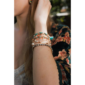 Composed of sustainable materials, this eco-friendly layered bead bracelet is as kind to the Earth as it is to your wrist. With its textured layered bead bracelet style, it offers a versatile range of sweet pastel hues that can complement any outfit, making it the epitome of trendy layered beads and studs.