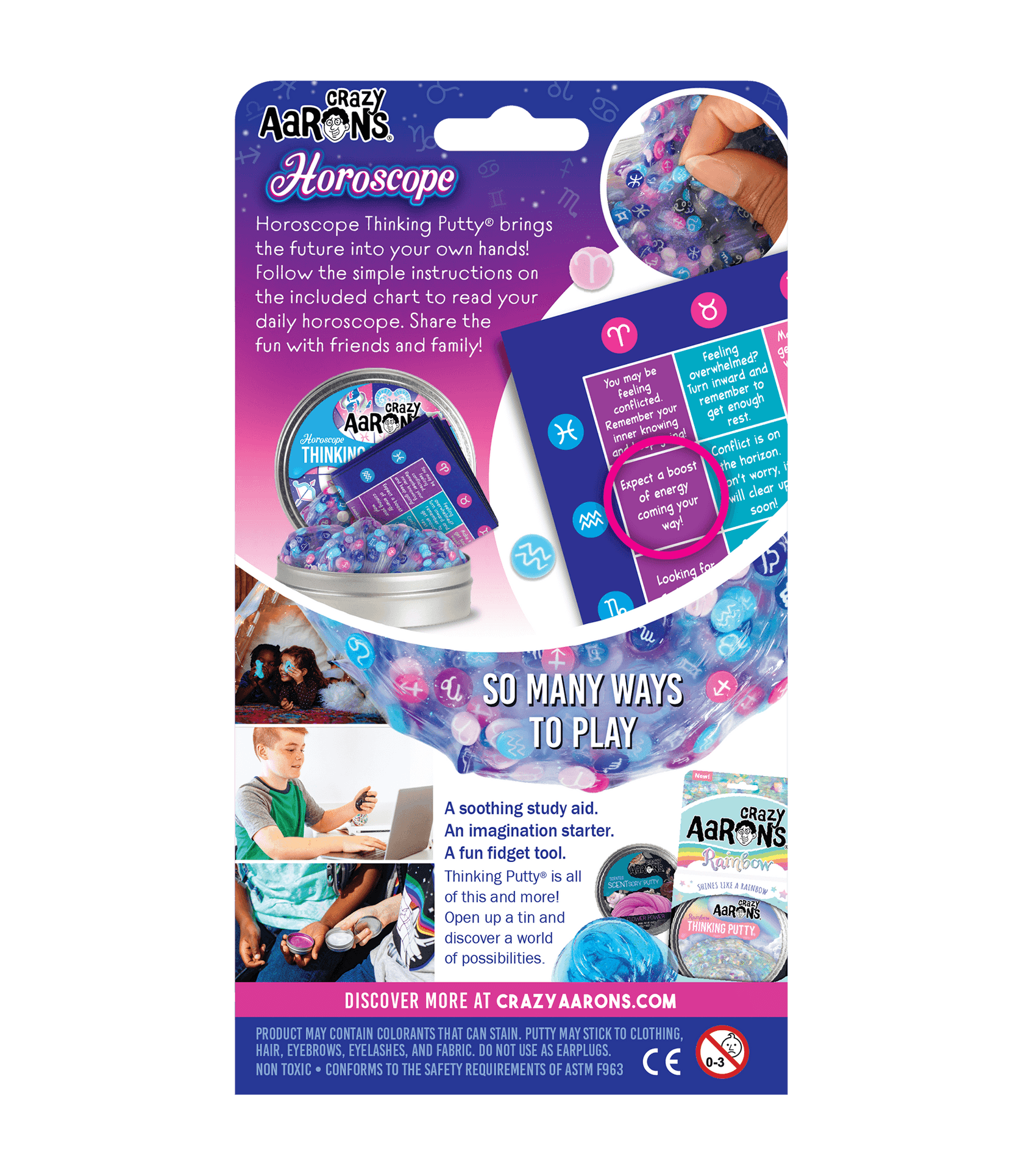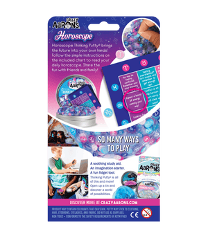 The mysteries of the stars have fascinated us for thousands of years! To this day, we gaze up at the sparkling night sky for guidance. Horoscope Thinking Putty® brings the future into your own hands with knowledge from the signs.