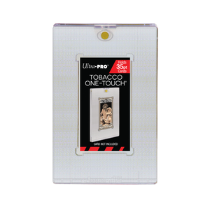 Ultra PRO's Tobacco ONE-TOUCH holders are premium trading card storage cases designed as the final destination for your collectible tobacco card size trading cards. The two-piece ONE-TOUCH holders are uniquely designed with slide-in hinges and magnetic closure so you'll never have to use a screwdriver again. The holder uses UV-blocking additives to protect your card from harmful UV rays and is made with non-PVC materials to provide acid-free protection - ensuring your valuable hit retains its condition while under the display. This model can hold Tobacco Size Cards up to 35pt in thickness.