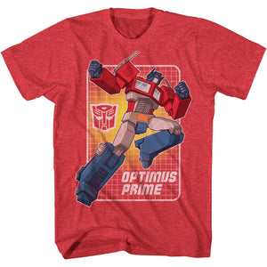 Authentic Looks: The officially-licensed short sleeve t-shirt features Optimus Prime on a red heather shirt