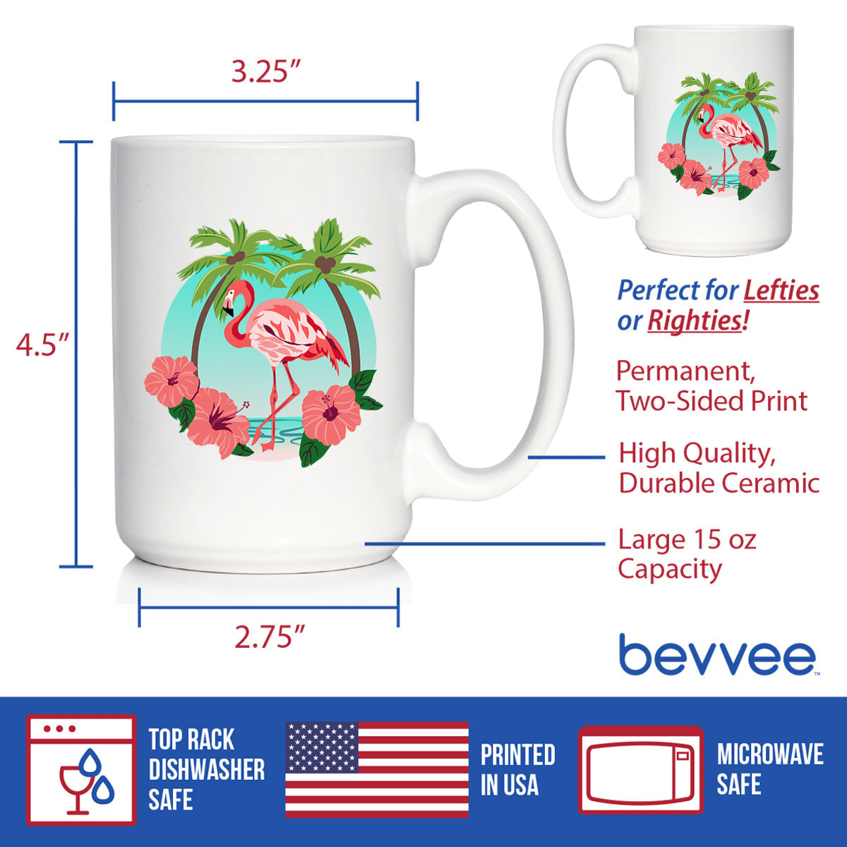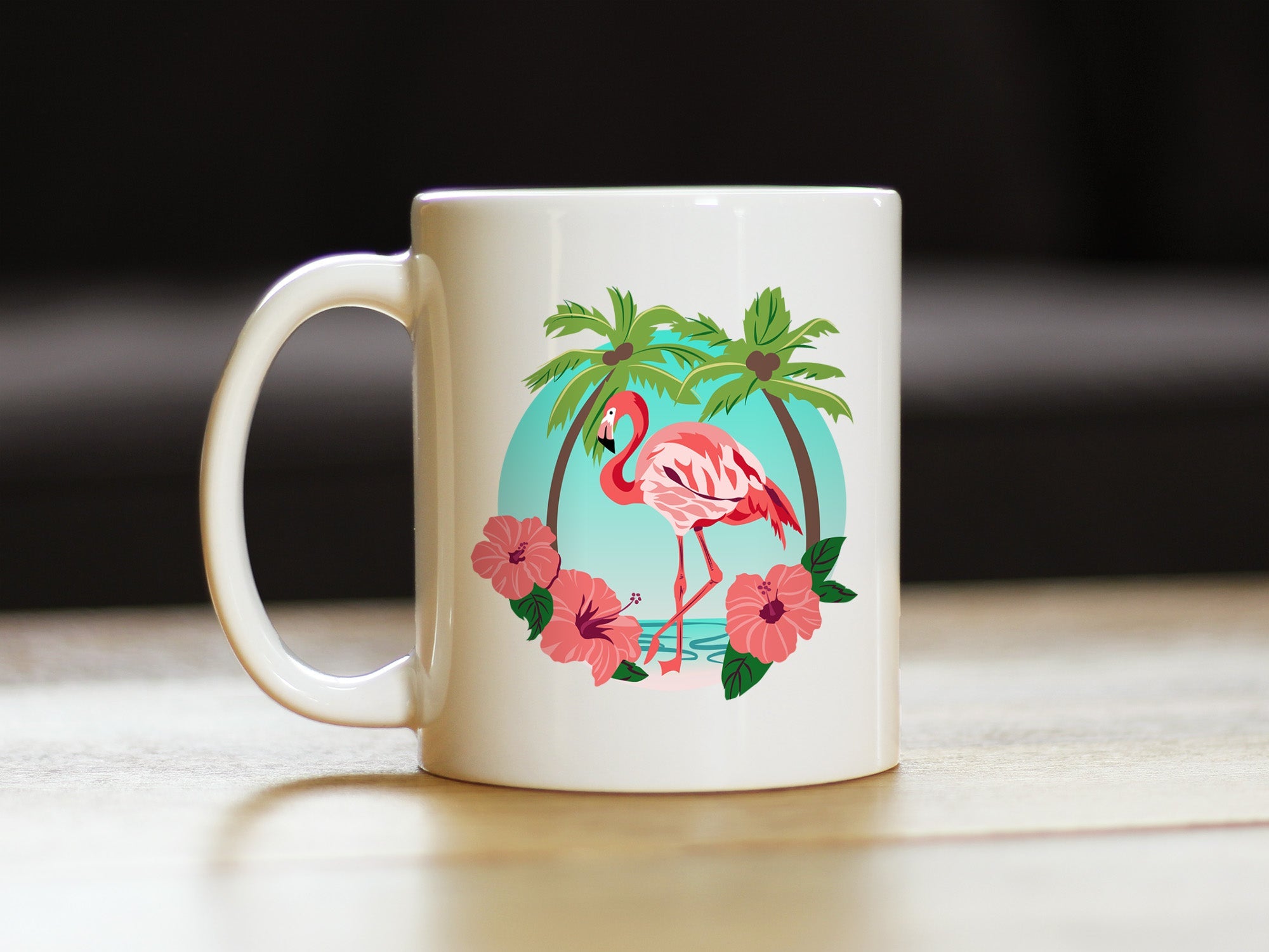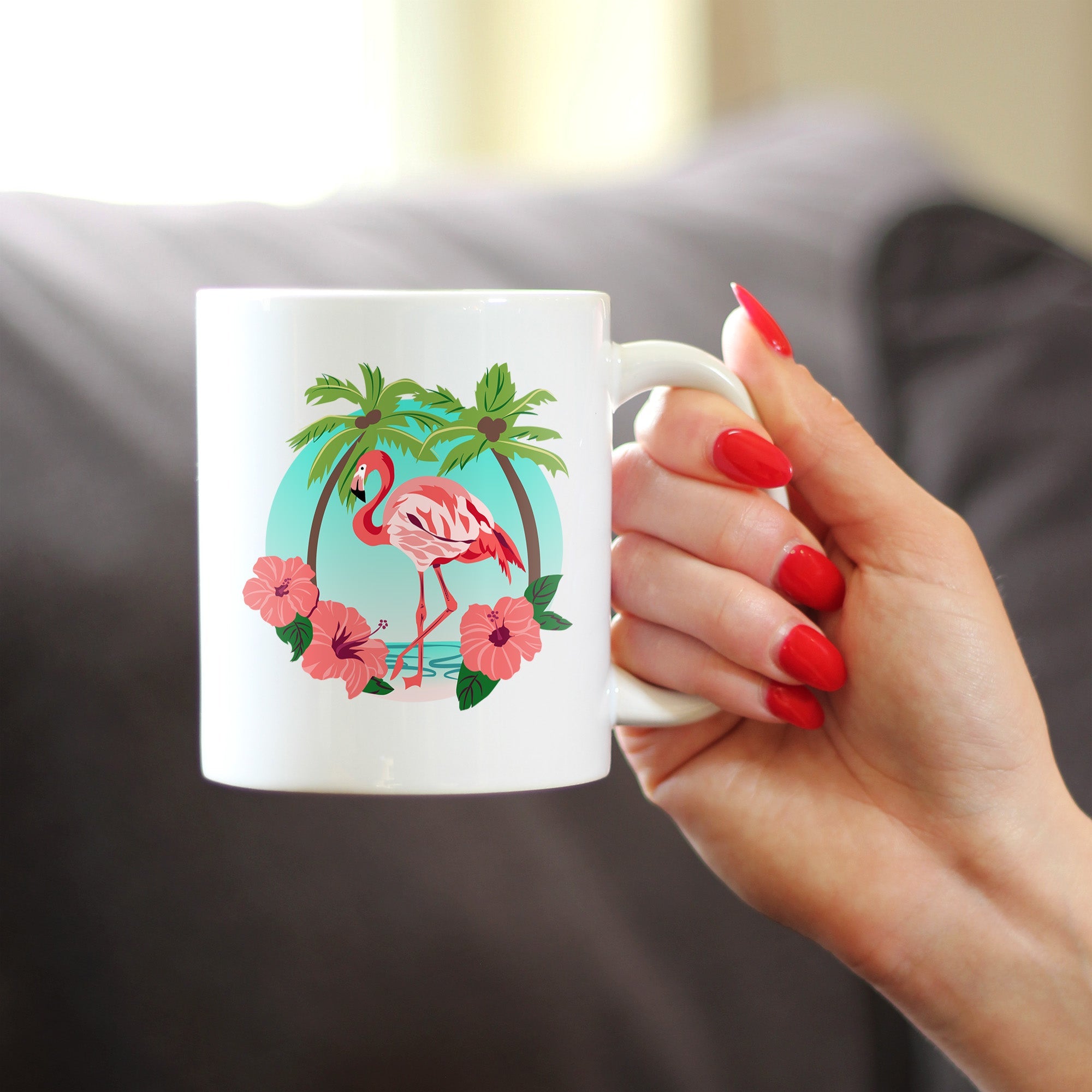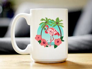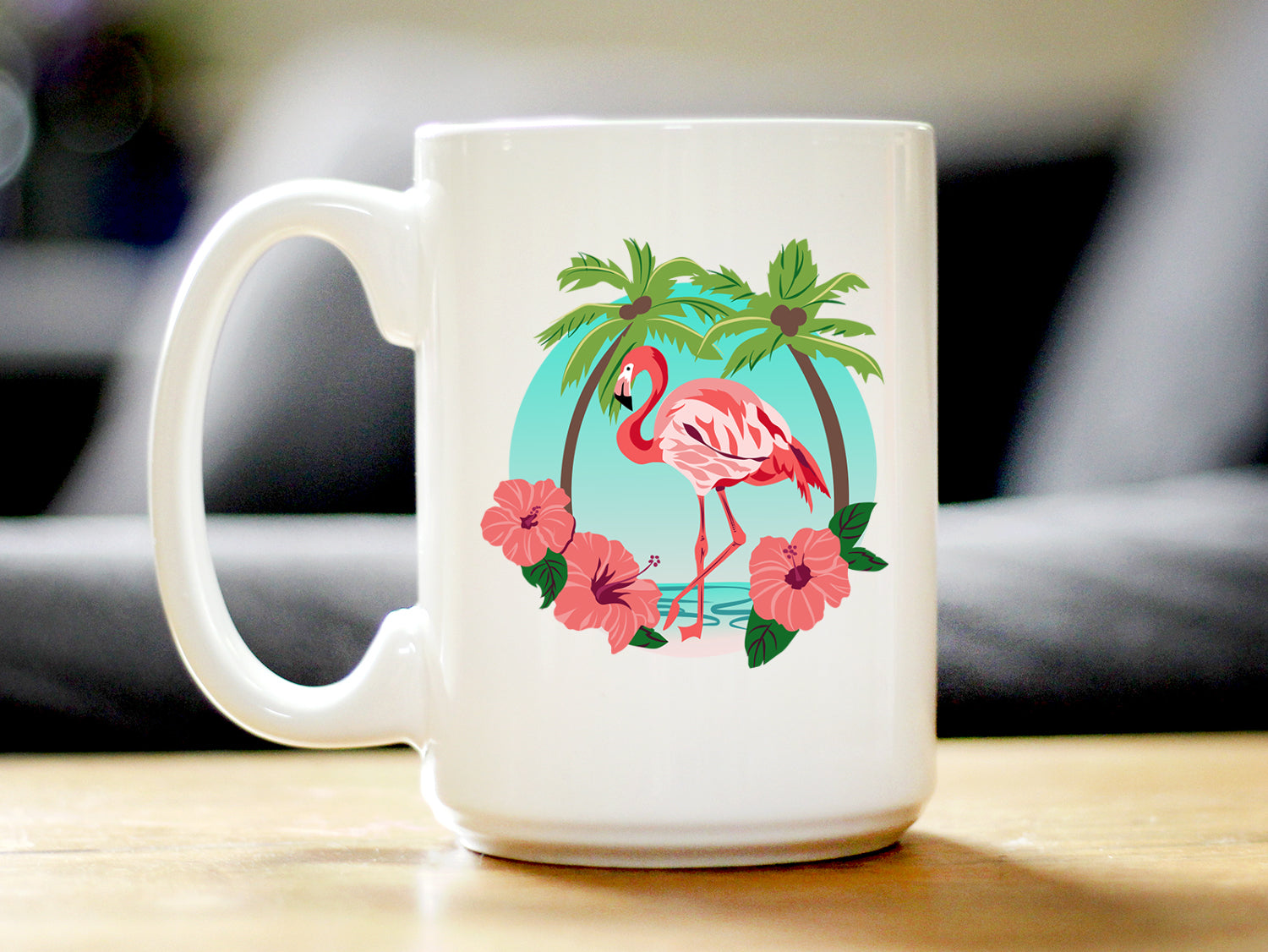 Tropical Flamingo Coffee Mug - Flamingo Gifts & Decor - Large 15oz & 11oz White Ceramic Mugs