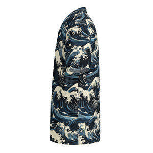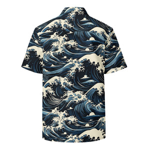 Elevate your wardrobe with our meticulously handcrafted Tsunami Splash Island Button-Up Shirt – a captivating fusion of natural inspiration and functional design. Featuring striking Japanese tsunami wave patterns, this unique masterpiece captures the dynamic beauty of nature in every stitch.
