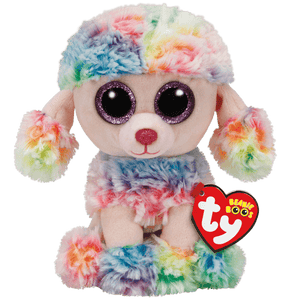 A colorful poodle, wow what a sight! Rainbow is certainly an impressive delight. A Beanie Boo poodle that looks like cotton candy, would fit into your collection and look just dandy.