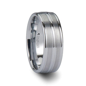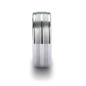 VANCOUVER White Tungsten Wedding Band with Triple Grooves - 8mm