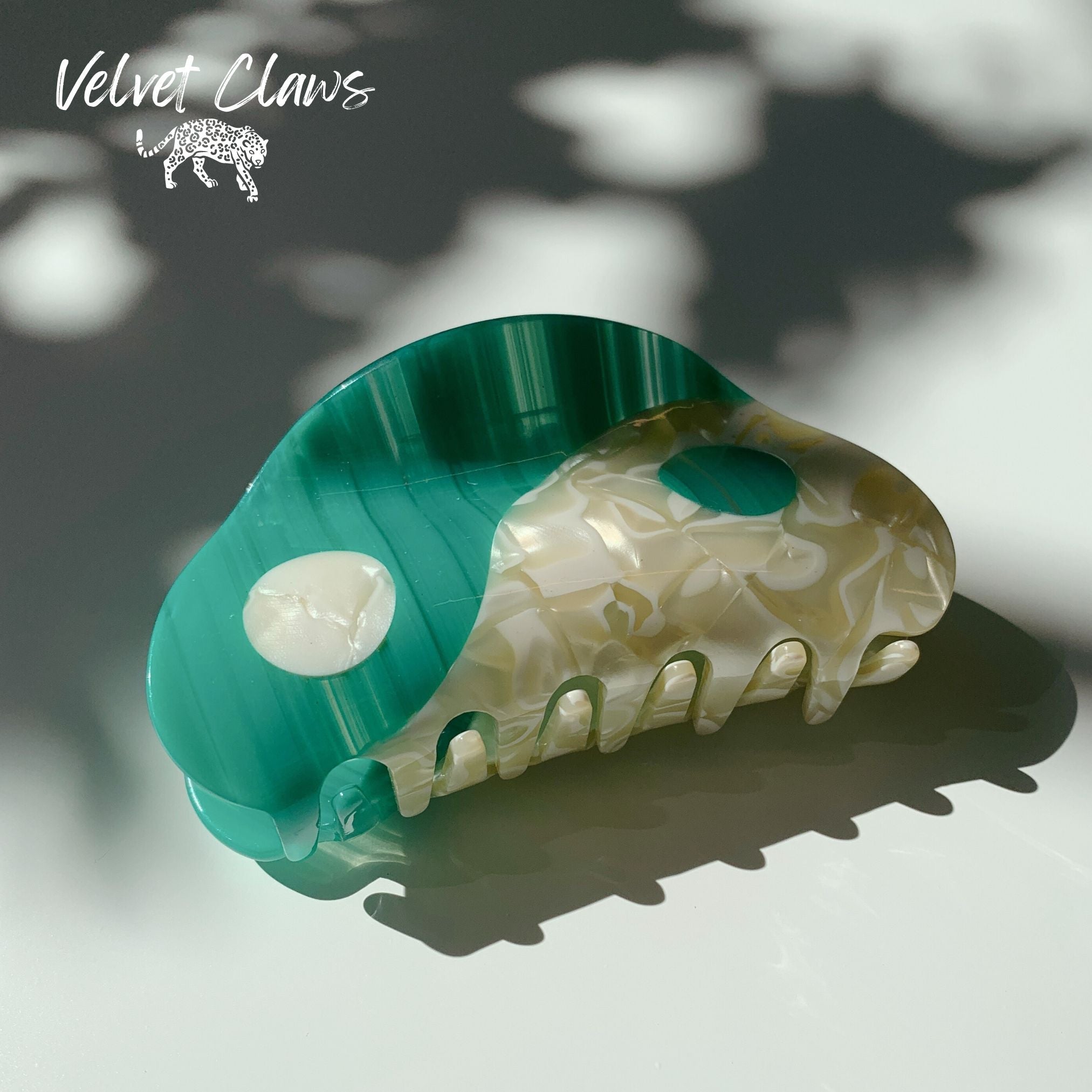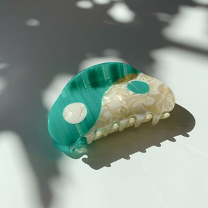 Velvet Claws Hair Clip | Gen Z Aesthetic Yin Yang in Green and White | Claw Clip in Velvet Travel Bag