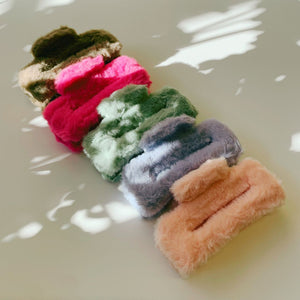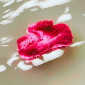 Velvet Claws Hair Clip | Rectangle Plush in Faux Fur Fuchsia | Claw Clip in Velvet Travel Bag