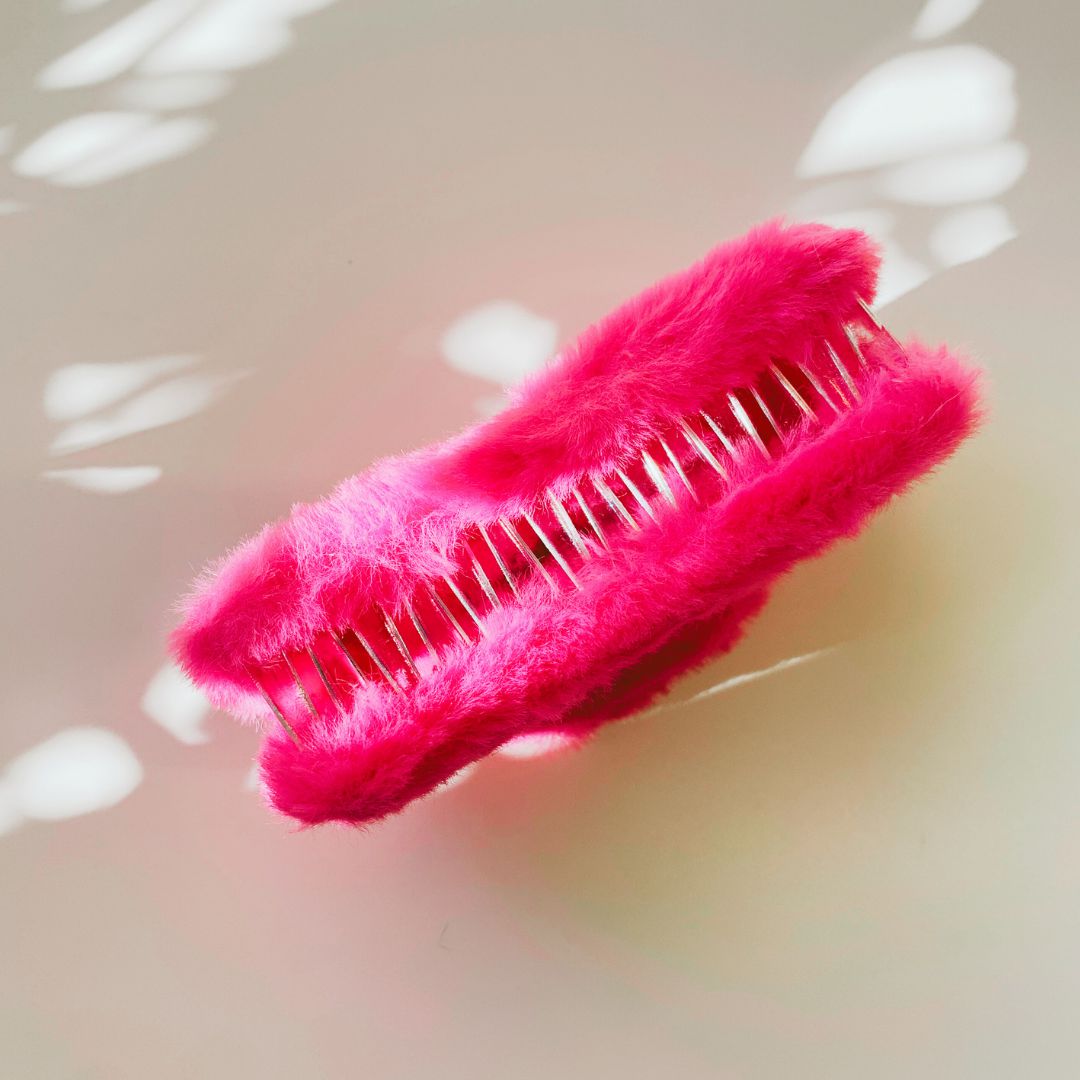 Bring a touch of luxury to your hair! The rectangular plush faux fur in a bright fuchsia tone is sure to make you happy. Soft to the touch it offers a luxurious feel.