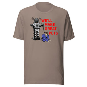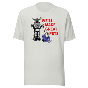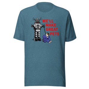 Hopefully our robot overlords will make things as comfy as this premium combed ringspun jersey t-shirt. Available in heather blends as well as 100% cotton. These tees are our most popular and are true to size, side-seamed with a contemporary unisex cut so that the fit is just right.