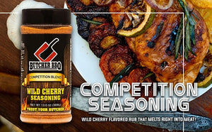 Introducing Butcher BBQ's Wild Cherry, the best BBQ rub that will satisfy even the sweetest tooth. With its irresistible cherry flavor that perfectly melds into your food, this rub is truly addictive. Crafted with the utmost care, our Competition Seasonings are made using only the finest quality ingredients. We take pride in hand-blending these seasonings in small batch productions to ensure the most exceptional taste. Whether you're grilling or smoking, Wild Cherry is the secret ingredient that will elevate your dishes to new heights. This versatile rub works wonders with all types of cooking—from seafood to vegetables, beef to pork, chicken to wild game—there's no limit to what you can enhance with Wild Cherry. Backyard chefs, caterers, and competition cooks alike will appreciate the exquisite flavor it brings to their creations. Butcher BBQ understands the importance of a great grilling spice recipe, and that's why we've formulated Wild Cherry to deliver a unique savory experience like no other. With its sweet and savory undertones, it adds depth and complexity to every bite. Get ready to indulge in the great cherry flavor that will leave your taste buds begging for more. So, whether you're a recipe writer experimenting with new flavors or a backyard griller looking to impress your guests, Butcher BBQ's Wild Cherry is the perfect companion for your culinary adventures. Don't miss out on the best BBQ rub that guarantees a masterpiece each time you fire up the grill. Unleash your creativity, ignite your taste buds, and let Wild Cherry transport you to BBQ heaven.Comes in 12oz