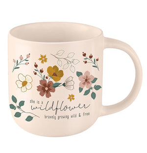 - Mug reads: "She is a wildflower bravely growing wild & free" in script style print