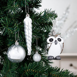Create a winter wonderland in your home with our exquisite Winter Woodlands Large White and Silver Ornament Set. This captivating collection features 90 stunning ornaments adorned with glittery snow owls, cones, snowflakes, and stalactites, bringing the magic of the snowy season indoors. Crafted with meticulous attention to detail, each ornament captures the essence of a serene winter landscape. The elegant combination of white and silver adds a touch of sophistication to your holiday decor, while the sparkling accents illuminate your space with a shimmering glow. These ornaments are versatile and can be beautifully displayed on your Christmas tree, wreaths, garlands, or used as table centerpieces. Let the enchantment of the winter woodlands adorn your home, creating a cozy and inviting atmosphere during the holiday season. 🎄❄️✨