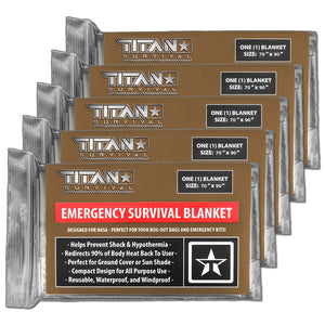 - COMPACT DESIGN - Each TITAN Survival Emergency Blanket is individually folded, wrapped, and sealed for easy storage and retrieval. These Extra-Large 70" x 90" blankets are 17µm thick and are perfect for Marathons, Backpacking, Emergency Kits, and Go-Bag or Bug-Out Bag gear.