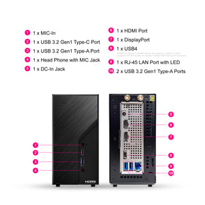 Designed for versatility, the Silicon Power XPOWER Mini Desktop Computer features a compact form factor that easily fits into small spaces while delivering reliable everyday performance. It is powered by an AMD Ryzen 7 8700G 8-core processor that features a 4.2 GHz base clock and boosts up to 5.1 GHz for enhanced responsiveness. It is also paired with 32GB of DDR5 memory and a 1TB TLC M.2 PCIe 4.0 SSD for fast boot times and smooth multitasking.