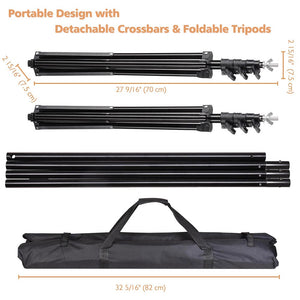 - Easy adjustment - 4 x 29" Section crossbars: width can be adjusted from 5 to 10 ft; you can combine 2 or 4 sections to fit you well; 2 Tripods: height can be adjusted from 2.6 to 8.5 ft to meet your different needs (more stable within 7ft)
