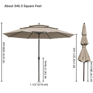 Yescom 11ft 8-Rib 3 tiered Umbrella can provide you with the shade you need at any time and any place. You can easily use the crank to open and close, and adjust the tilt of the patio umbrella by button. Perfect for offering shade at your patio, garden, backyard and pool, also great for cafe, market, villa, hotel, resort and so on.
