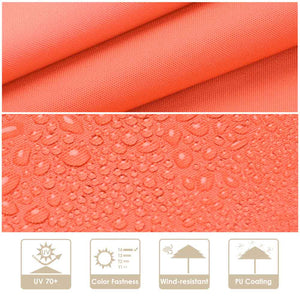 - Umbrella Canopy made of 220g yarn-dyed fabric with PU Coating features UV70+ to effectively block more than 90% of UV light, and water resistance