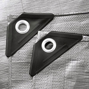 Polyethylene Tarp 12x24 ft Silver/ Black with heat reflective coating, High Quality 100% UV protection, Water Proof, Rot Proof & Mildew Resistant. Ideal for general cover tent fly, camping ground sheet, car covers, boat covers, machine covers, wind protectors, privacy walls, picnic mats and pool cover.