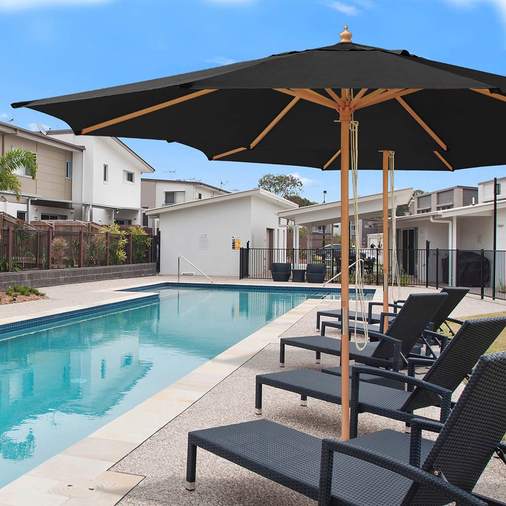 - UV30+ 180g/sqm anti-fade polyester umbrella canopy: