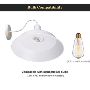 14 Inch Milk White Color Wall Lamp 1 Light & E26 Bulb Holder, perfectly matches industrial and American style decorating. Ideal for cafe, restaurant, hotel, bookshop, kitchen, dining room and other indoor lighting.